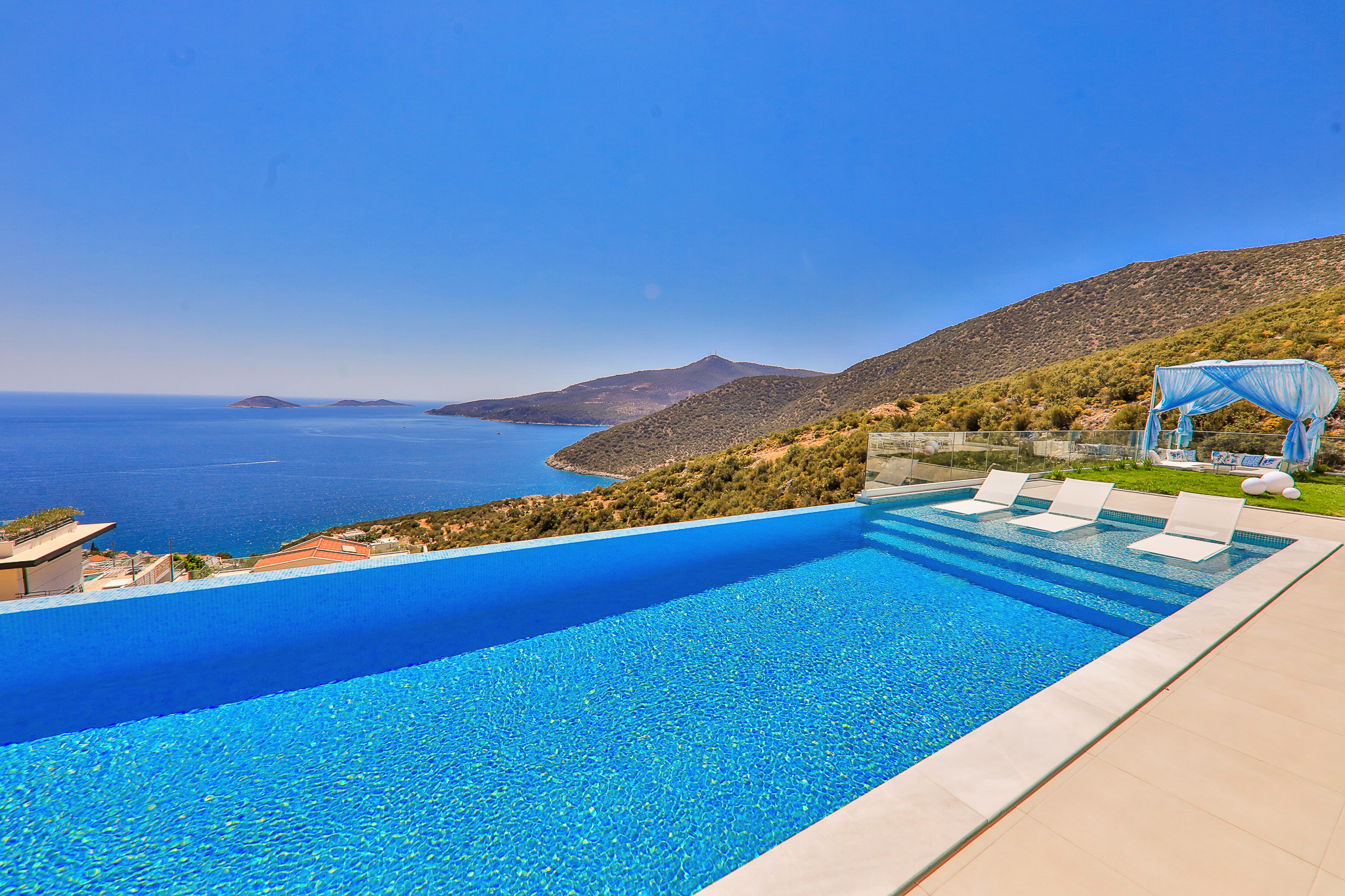 Villa Bella Mare is an ultra-luxury villa in Kalkan, a romantic escape in the heart of Lycian Coast. A wonderful sea view intertwined with nature awaits you in Kalkan Kalamar Bay. We offer our guests an unforgettable holiday in a spacious and ultra-luxury villa designed with inspiration from the sea and reflecting the unique beauty of the Mediterranean.